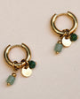 Add a radiant touch of vintage charm with the Glimmer Hoops—a perfect harmony of classic gold and earthy elegance. These 18K gold-plated stainless steel tarnish resistant hoops feature delicate green natural stone charms that shimmer softly with every move, catching the light and sparking conversation.