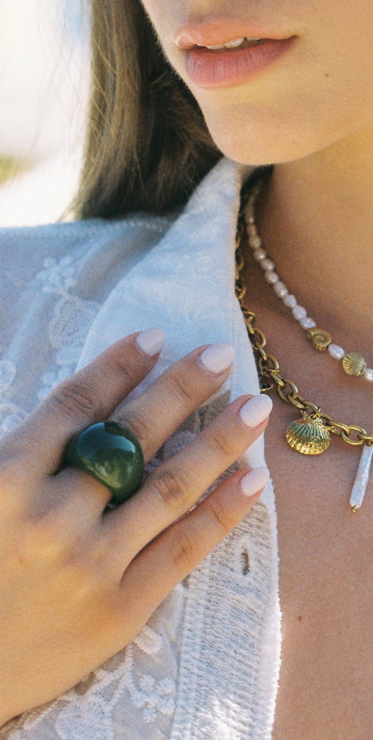 Go big or go home! The Kona Ring is your new favorite chunky statement piece, designed to stand out without weighing you down. This bold, smooth ring is crafted from high-quality resin, giving it a gorgeous, polished finish and an incredibly comfortable fit. It's the perfect pop of modern artistry for any outfit, effortlessly cool whether you're dressing up or keeping it casual.