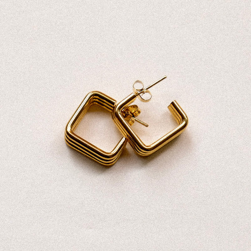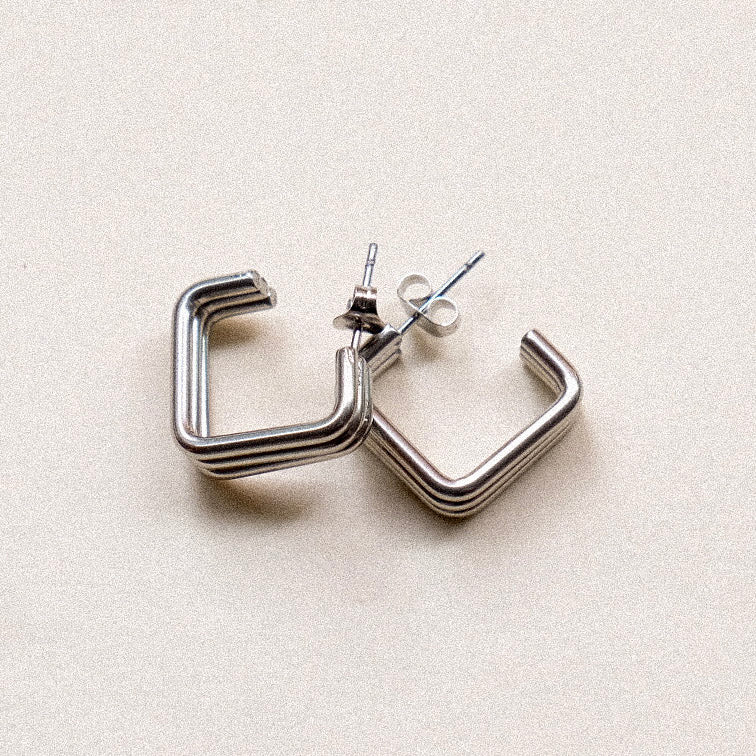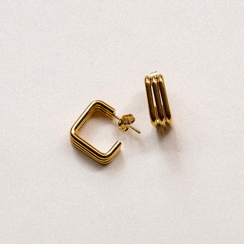 Elevate your everyday look with the Maya Hoops, a modern twist on timeless elegance. Made from high-quality stainless steel in gold or silver, these square studs combine a lightweight, bold geometric design with effortless sophistication.
