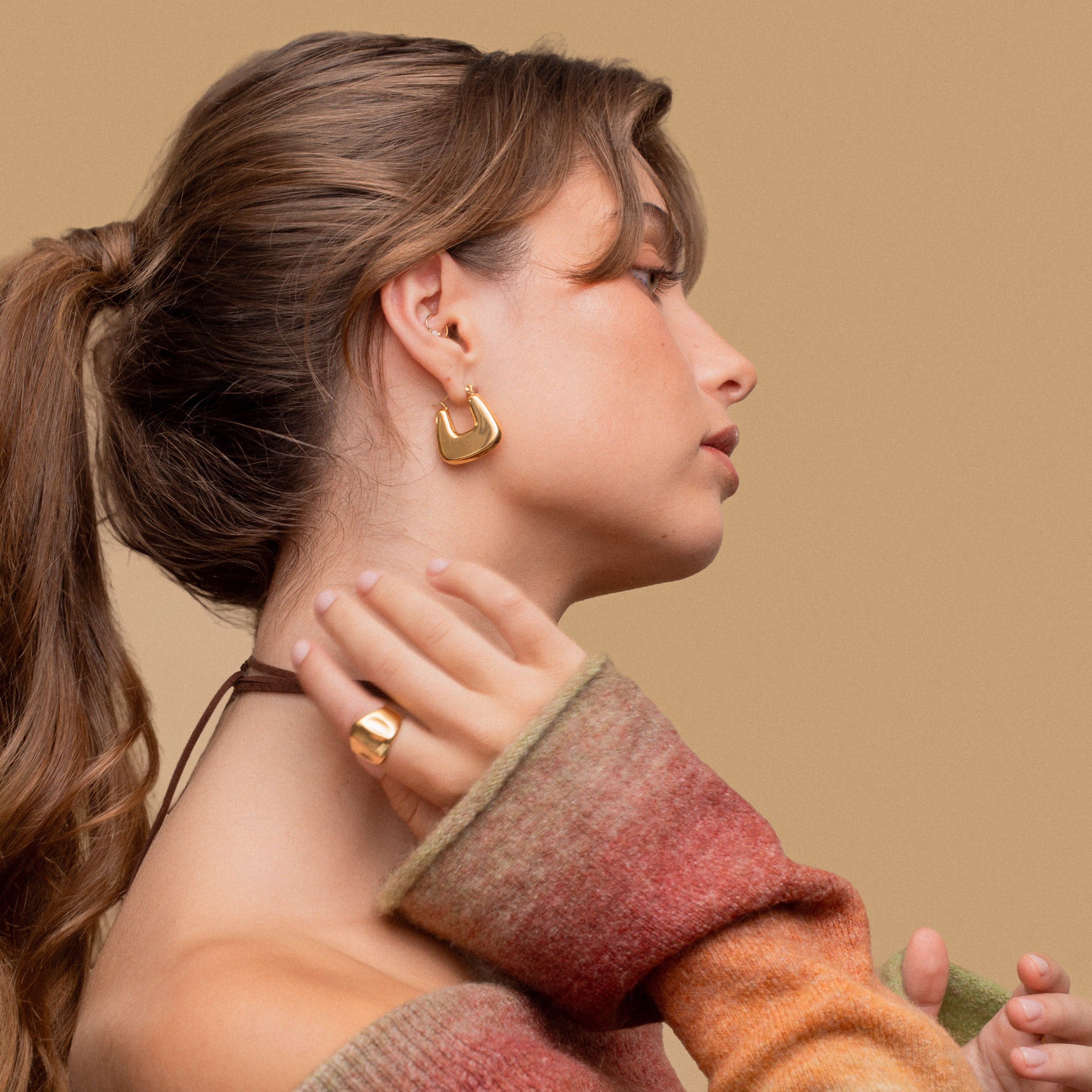 Modern and bold, the Mood Ring is your go-to for everyday edge. Crafted from waterproof, hypoallergenic stainless steel with rich 18k gold plating, its sleek geometric design blends clean lines with contemporary style.