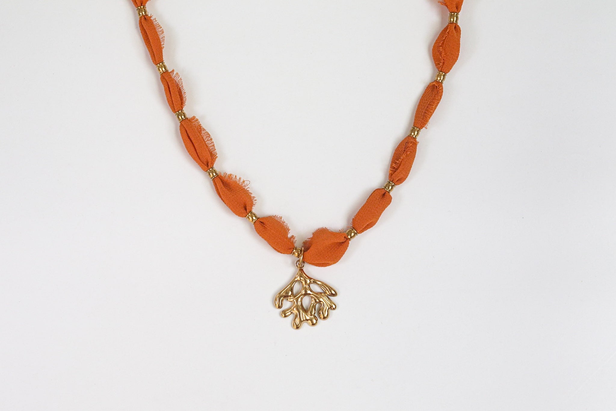 Channel the warm, sunny vibes of the coast with the Noosa Necklace, featuring a golden, organic pendant and a vibrant, textured fabric chain that gives a perfect pop of color. This chain is 45 cm long with a 5 cm extensor for easy adjustment—if you want a different length, just let us know at checkout!