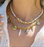The Ravello Necklace takes classic elegance and gives it a sun-kissed Italian upgrade. This stunning choker features a string of delicate pearls accented by gold shell beads that sit perfectly at your collarbone. At a versatile with a extender, it's ideal for layering or wearing solo. The metal components are waterproof and tarnish-free (thank us later!), and if you need a different size for your custom look, just leave us a note at checkout!