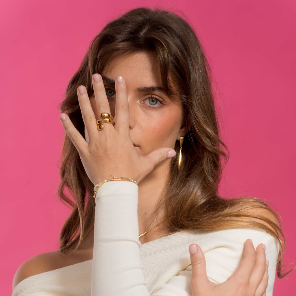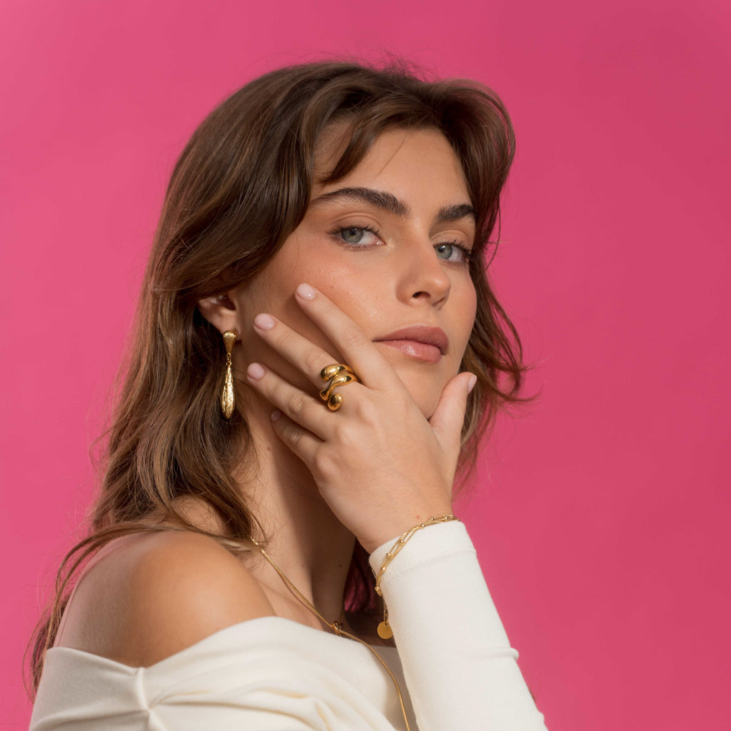 Add bold elegance to your everyday look with the Swirl Ring, a unique piece designed to stand out. Crafted from high-quality stainless steel with a radiant gold finish, its irregular textured swirl catches the light, adding effortless flair to any outfit.